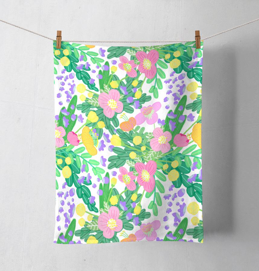 暖かく柔らかい色味の春の花でいっぱいのデザインです。