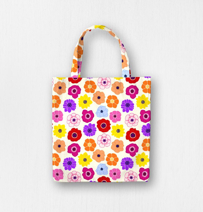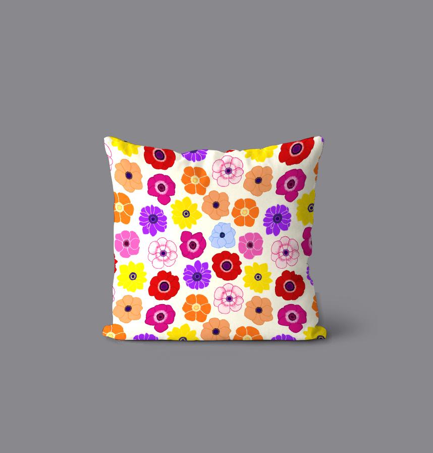パターン説明 多彩なカラーのアネモネが集まり、華やかなパターンです。