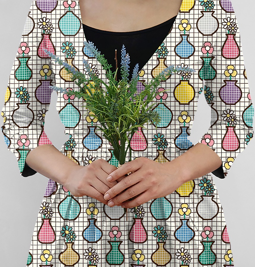 パターン説明 A to Z シリーズの V:花瓶(vase)です A to Z シリーズは、輪郭の表情にこだわったアウトラインシリーズのパターン柄集です