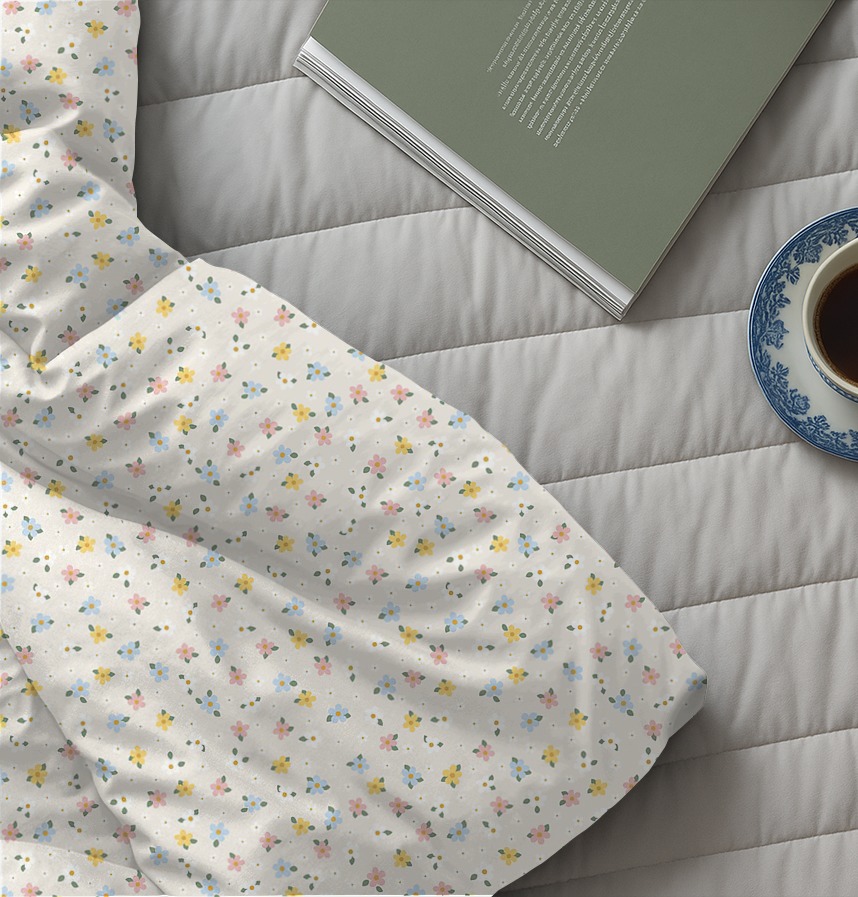 パターン説明 小さな花が繰り返されるレトロスタイルのフラワーパターンです。