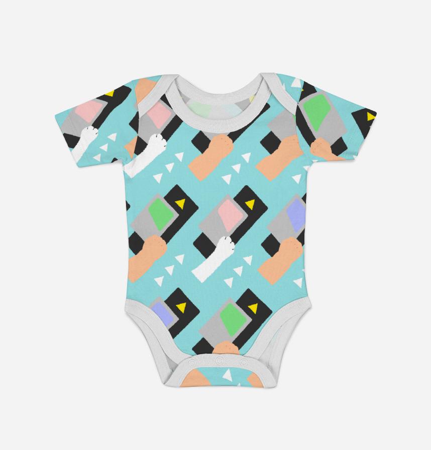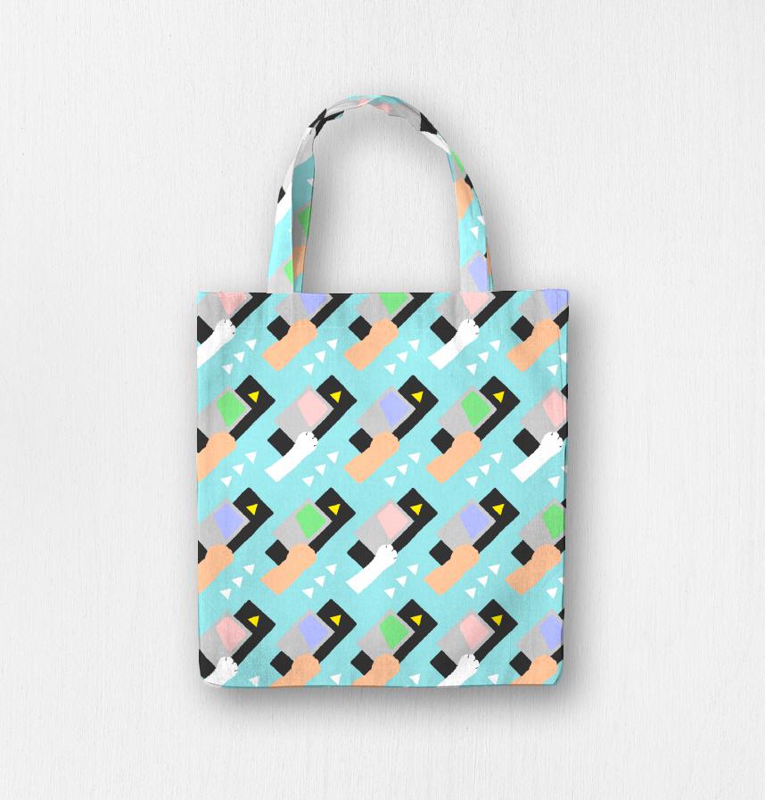 パターン説明 駅の自動改札機にICカードをタッチしているパターンです。大きめに使うとポップな雰囲気、小さめに使うと千鳥格子のような雰囲気です。子どもの手と猫の手がアクセント。