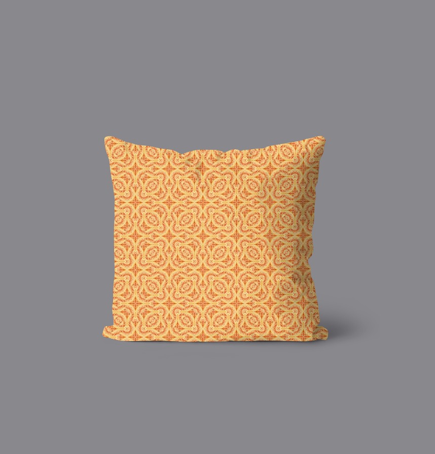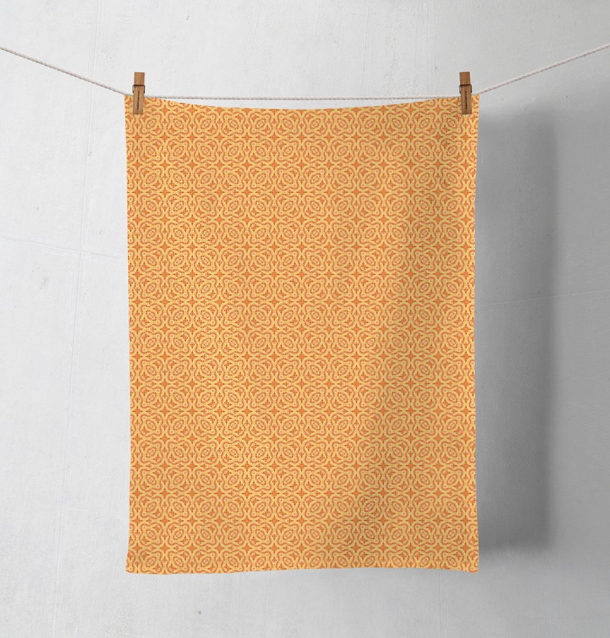 パターン説明 "Harvest Wish" is a warm, ornamental repeat inspired by wheat sheaves and autumn wreaths. Interlaced botanical motifs form a symmetrical tile in golden and amber tones, creating a cozy, folk-inspired rhythm.