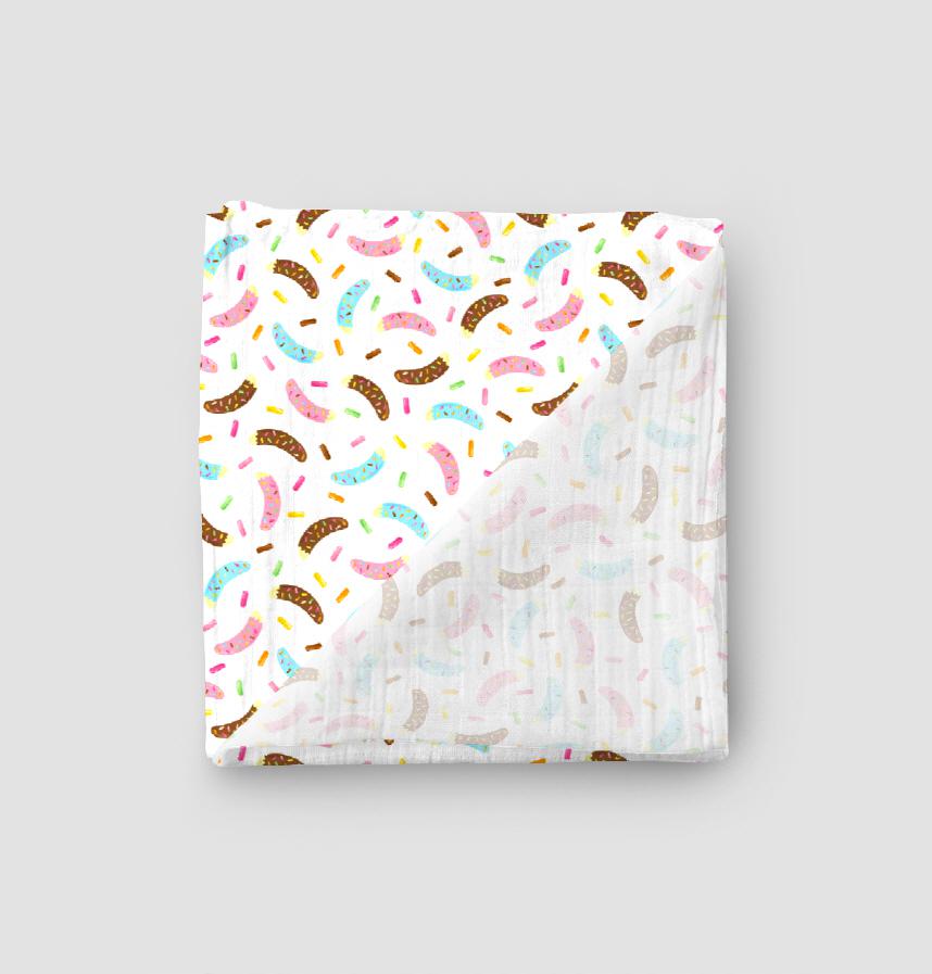 パターン説明 カラフルなチョコバナナとシュガスプレーの柄です