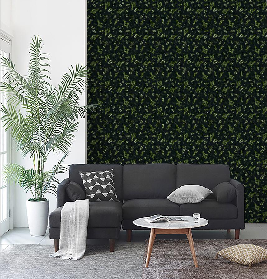 濃い緑色の背景に線画で花びらが敷かれています。