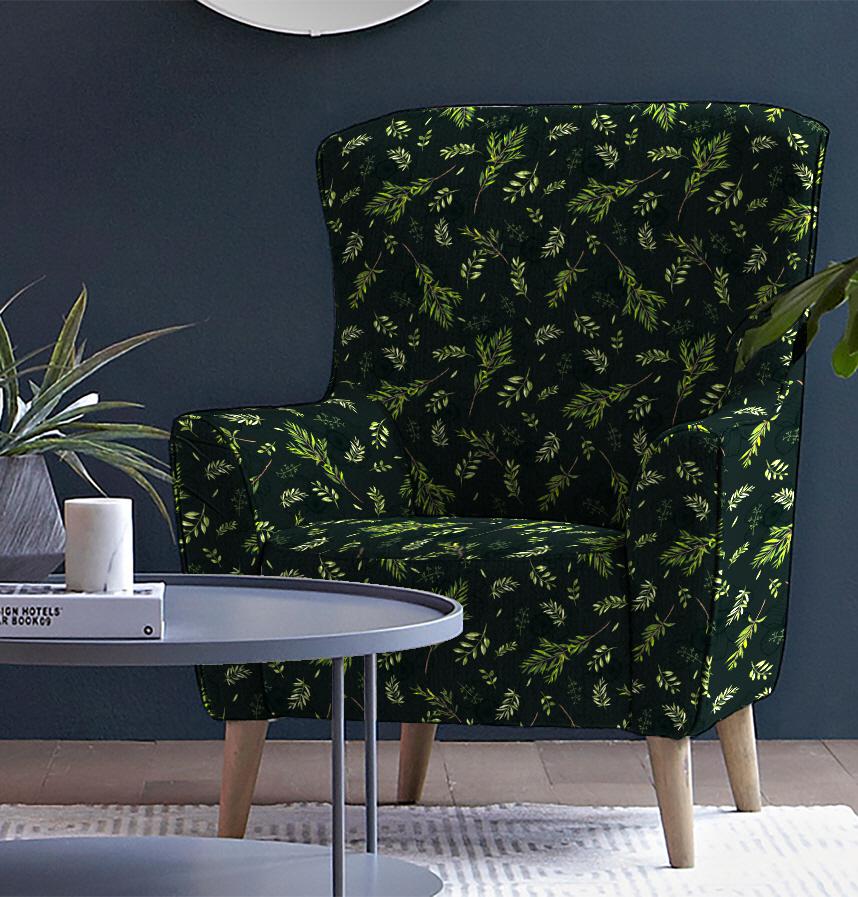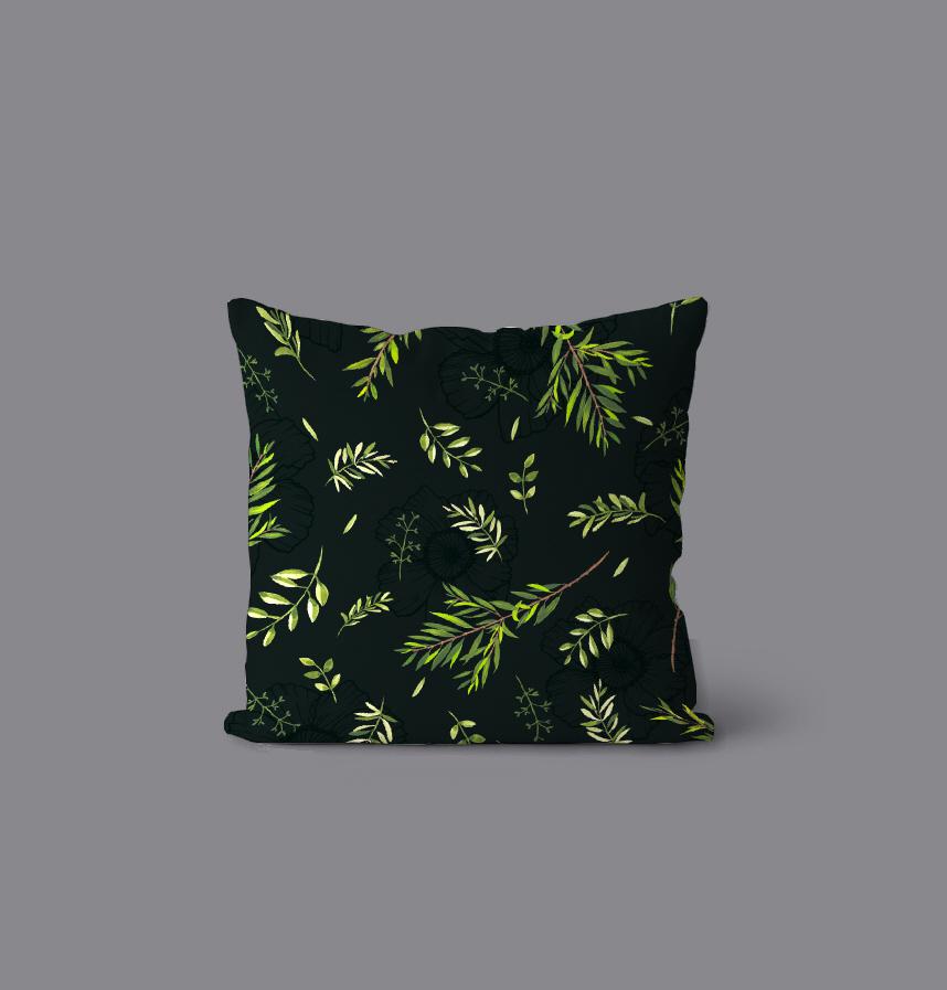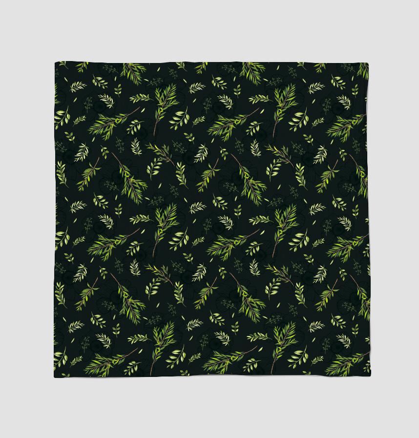 その上に水彩画で手描きした明るい緑系カラーの葉っぱを