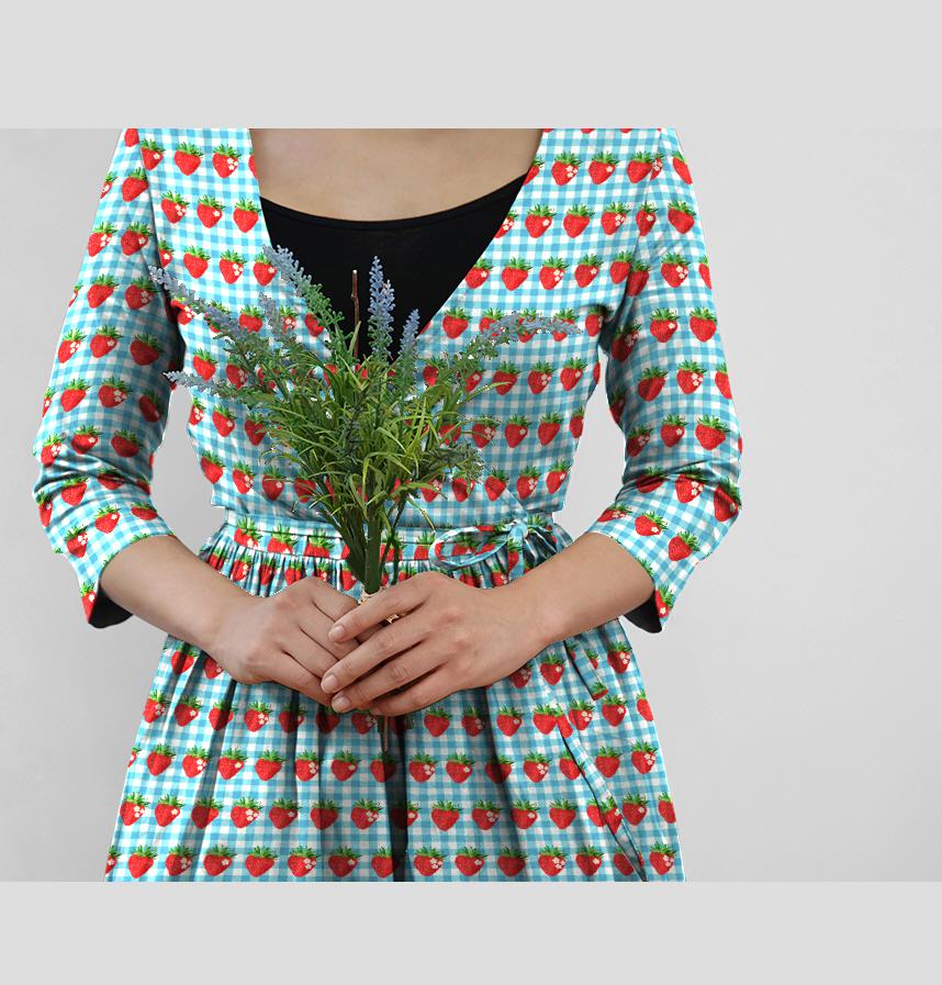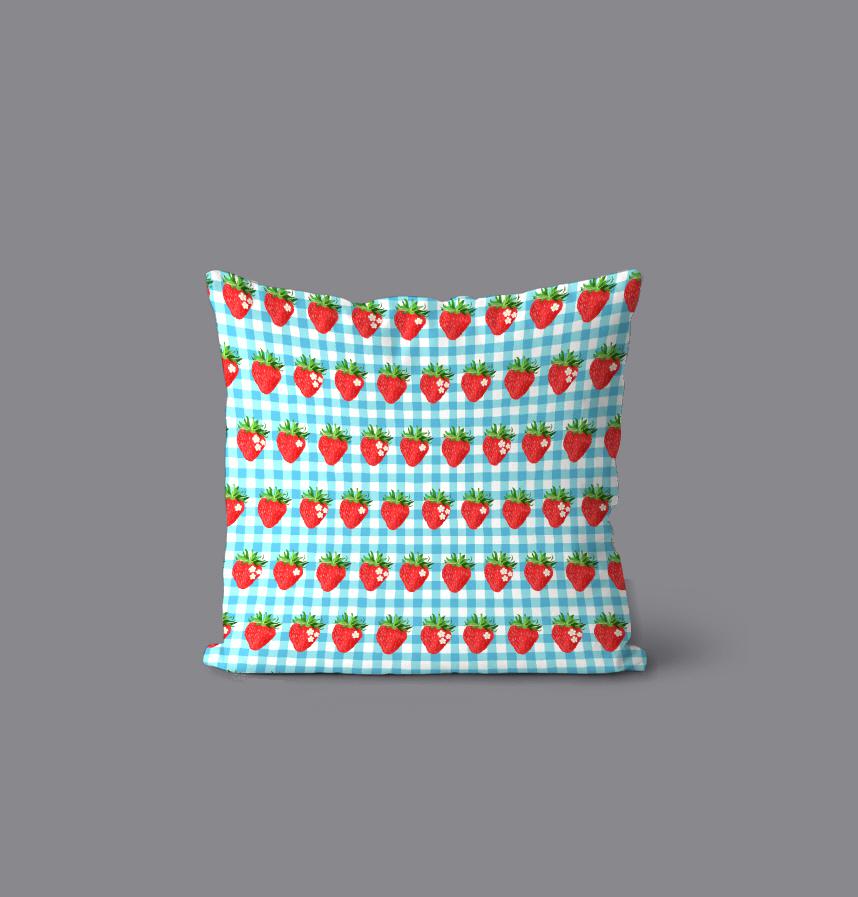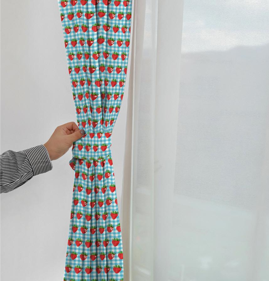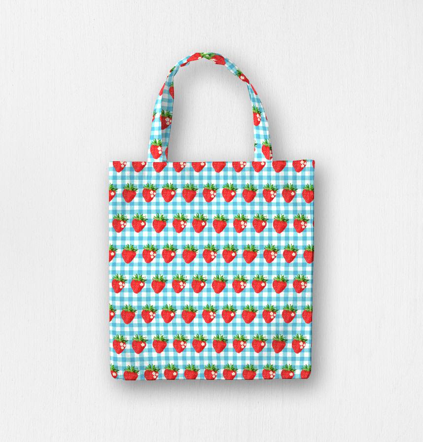 パターン説明 キンガムチェックと苺モチーフの生地です。