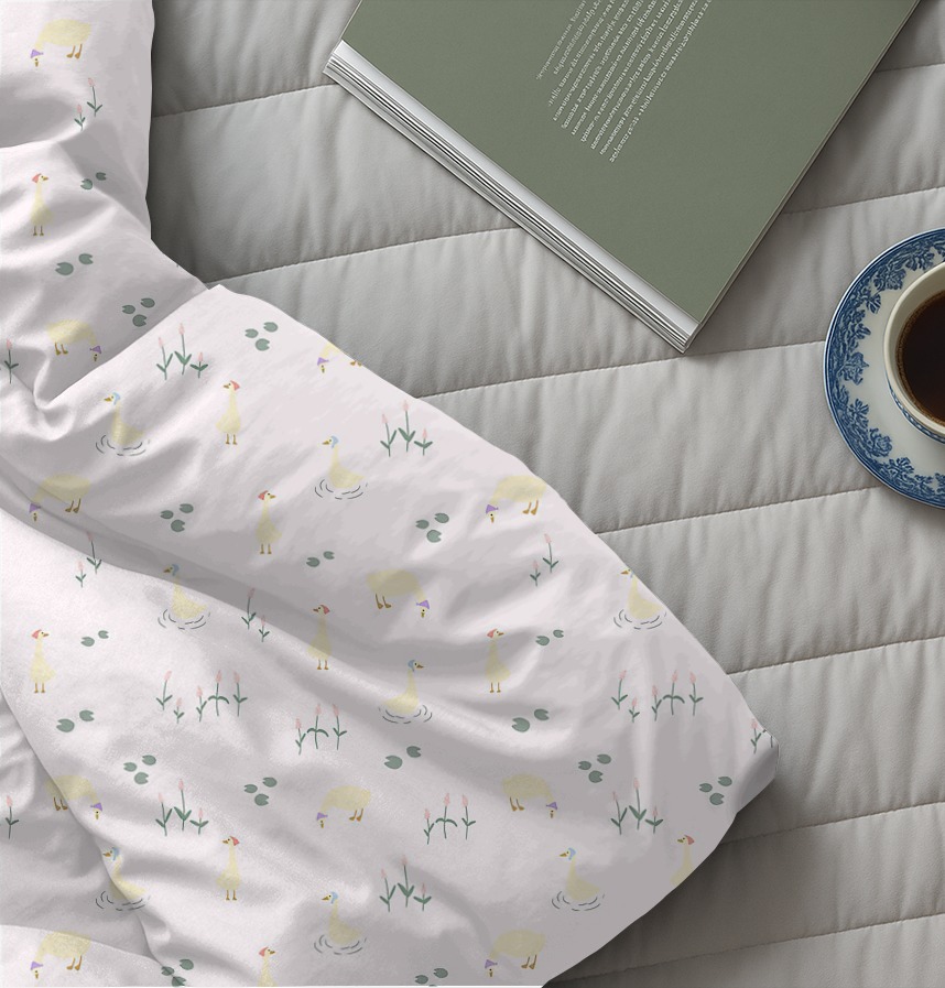 パターン説明 池のほとりの鴨たちを表現したパターン