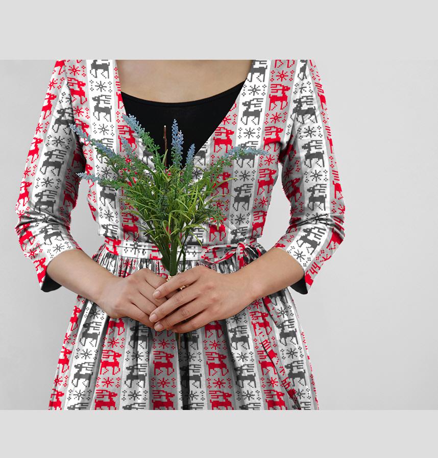 雪の結晶とシカが互い違いにならんだモチーフは自信作です!