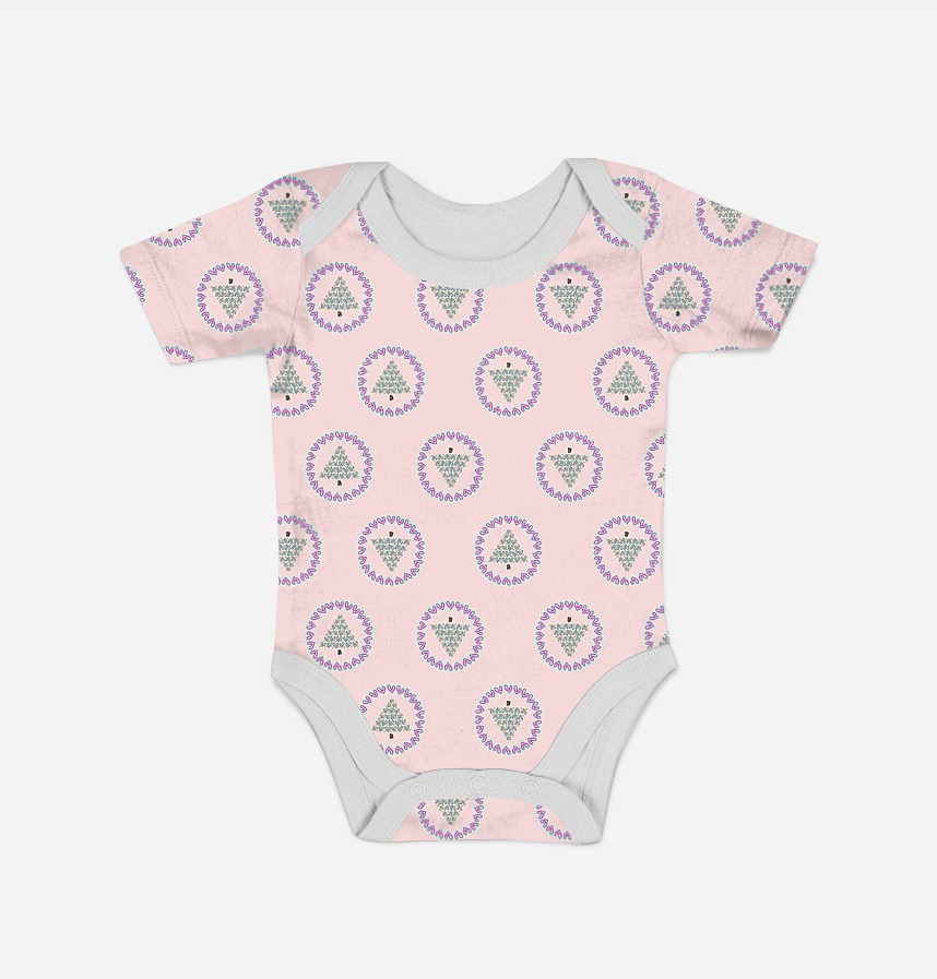 パターン説明 横、縦 5cmサイズのくるくるラブリーの木が繰り返される手描きイラストパターン