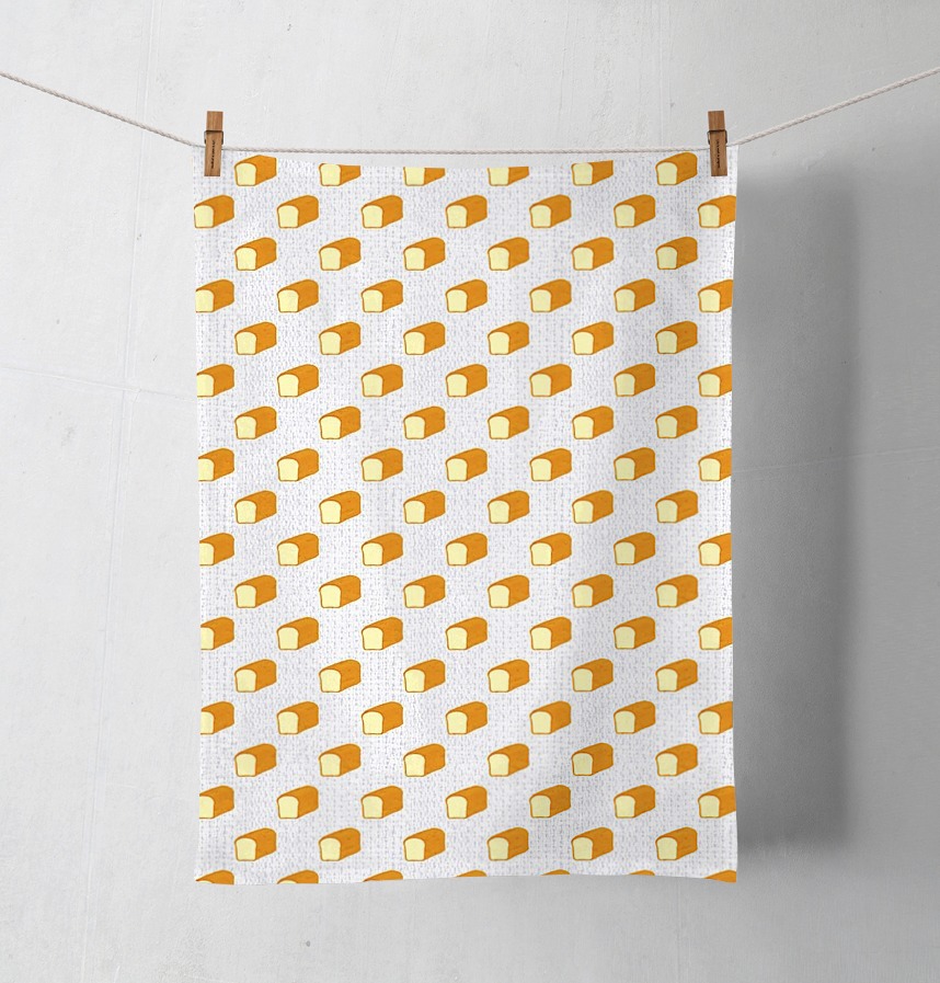 パターン説明 エプロンやテーブルクロス、キッチンタオルに使えば、毎朝の食卓がパン屋さんみたいに可愛くなりそうなパンの総柄です。暖かみが感じられるようにリネン風のプリントがベースになっています。