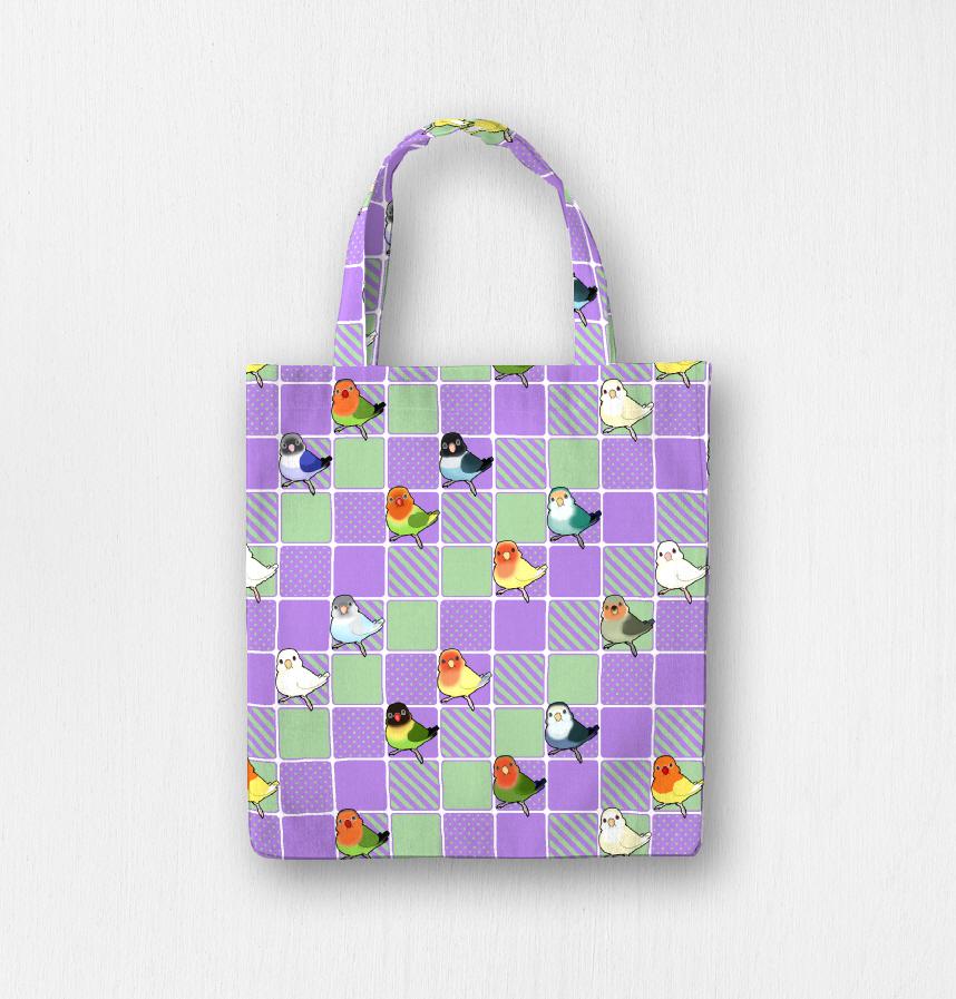 パターン説明 ラブバードとタイル 紫&緑 です。