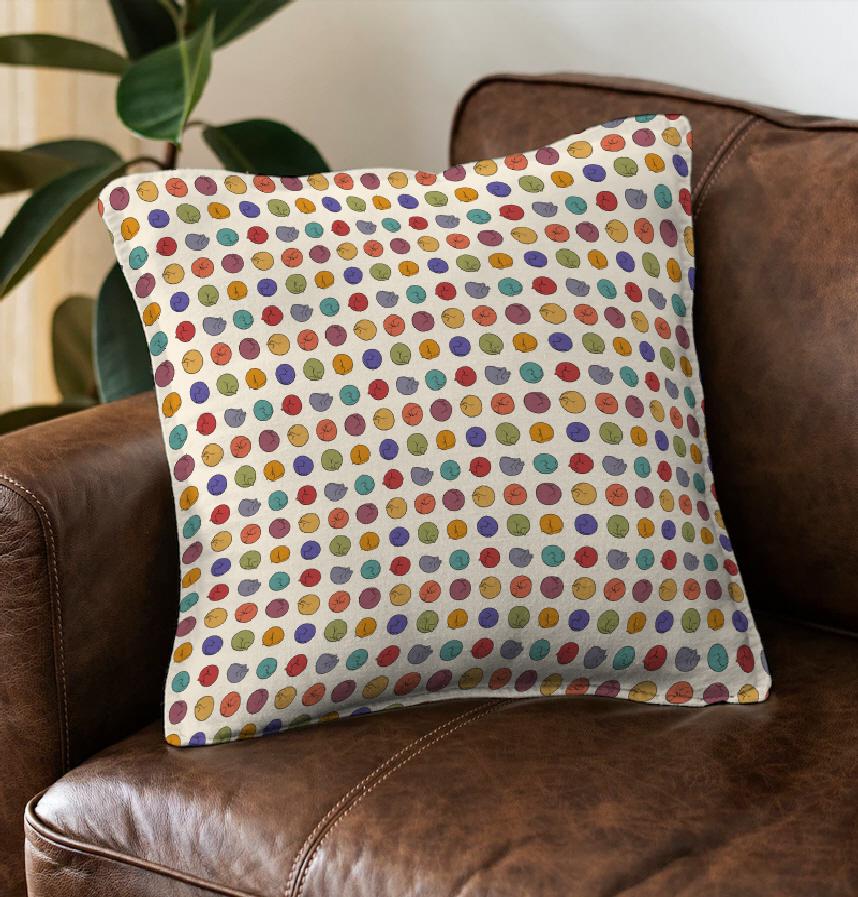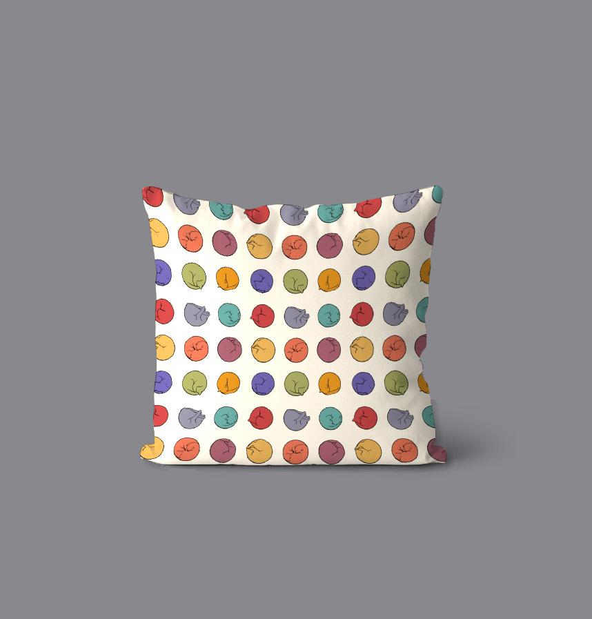 パターン説明 まあるく眠る猫たちを水玉模様にしました。