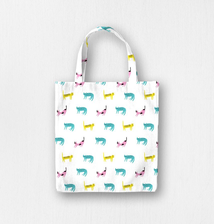 パターン説明 海外風なテイストのカラフルな猫のパターンです。