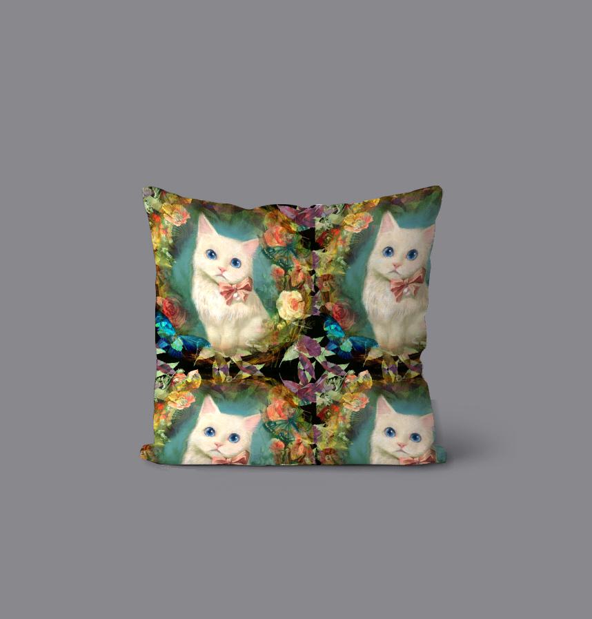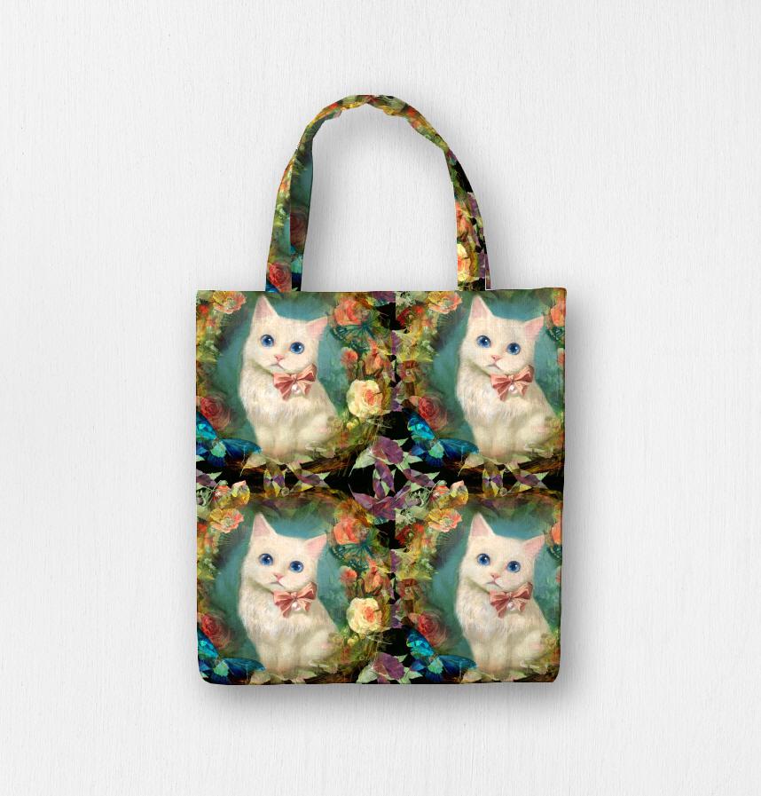 パターン名 青い瞳の白猫とミステリアスなロココ調背景アート