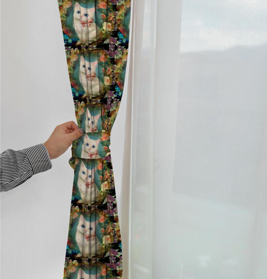 パターン説明 青い瞳の白猫とミステリアスなロココ調背景アート