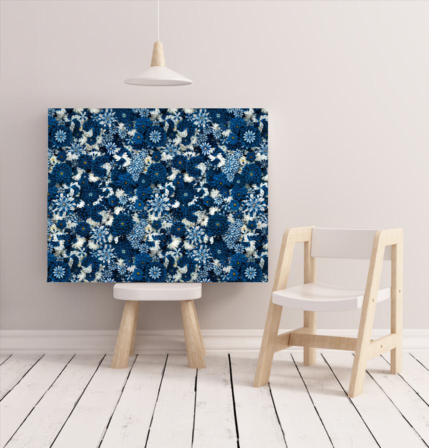 50本以上のつまみ細工の花を制作し、それらを丁寧に並べ撮影した写真をリピート柄になるように画像編集しています。