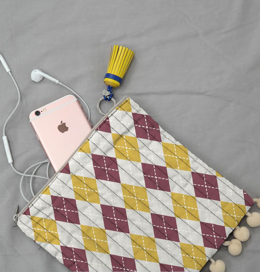 アーガイル柄のデザインです。秋や冬の装いや小物などにいかがでしょうか。