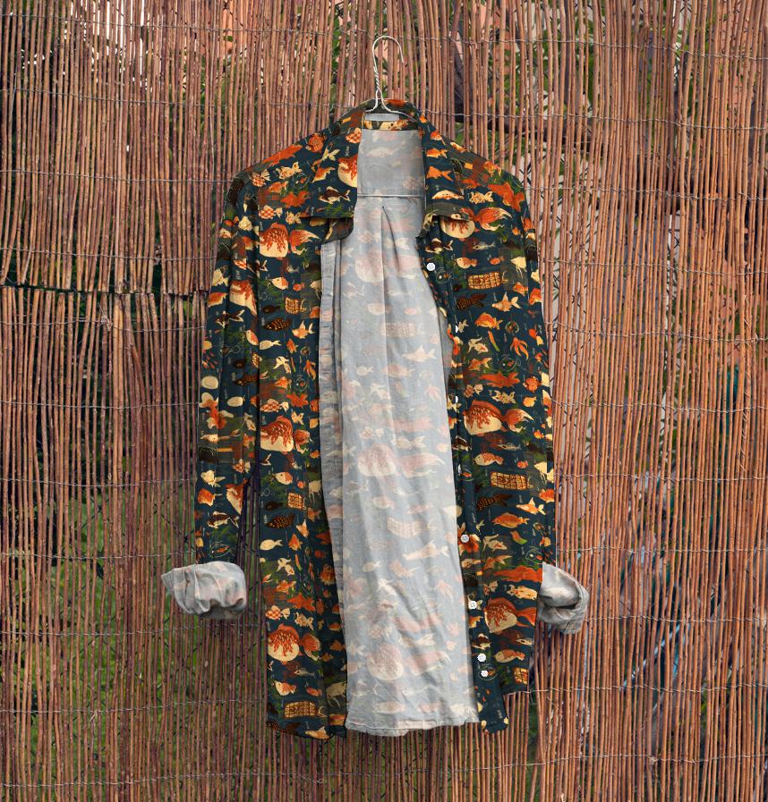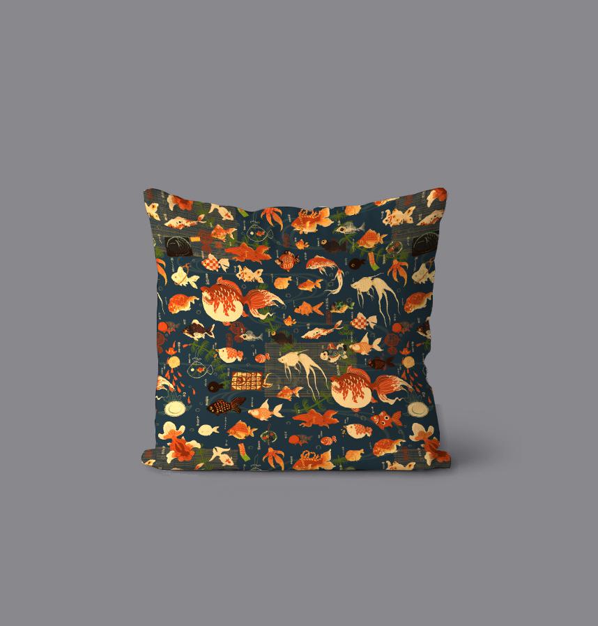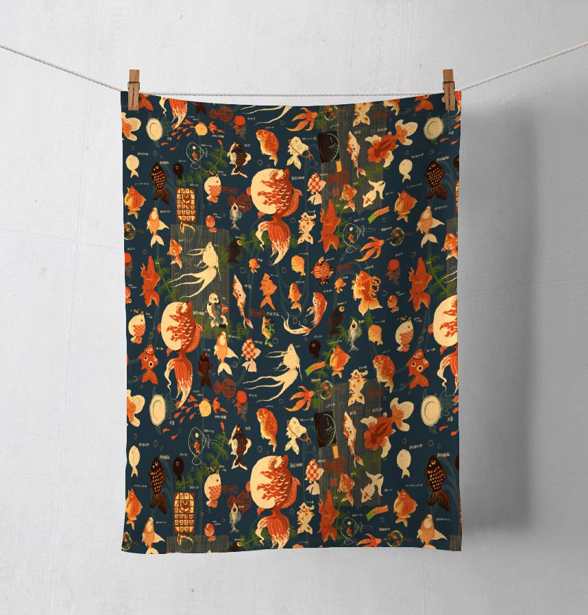 いろいろな金魚の妖怪たちが泳いでいる様子を、デザインにいたしました。