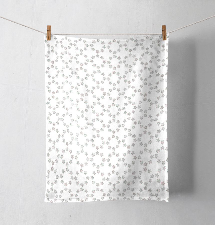 ピンクと緑を白い線で隔てた、市松模様から小さな桜の花を作りました。さらに小さな桜を輪の形に並べて、模様のように。