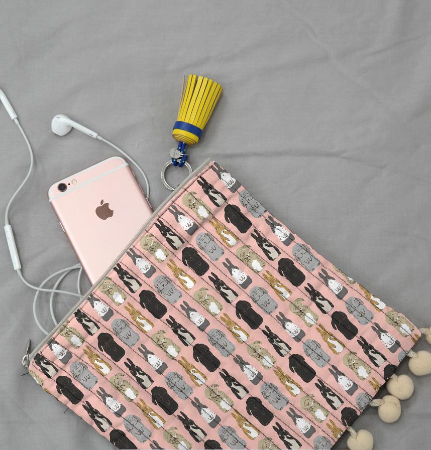 様々なポーズをした立ち耳うさぎさんと垂れ耳うさぎさんを並べて模様にしました。