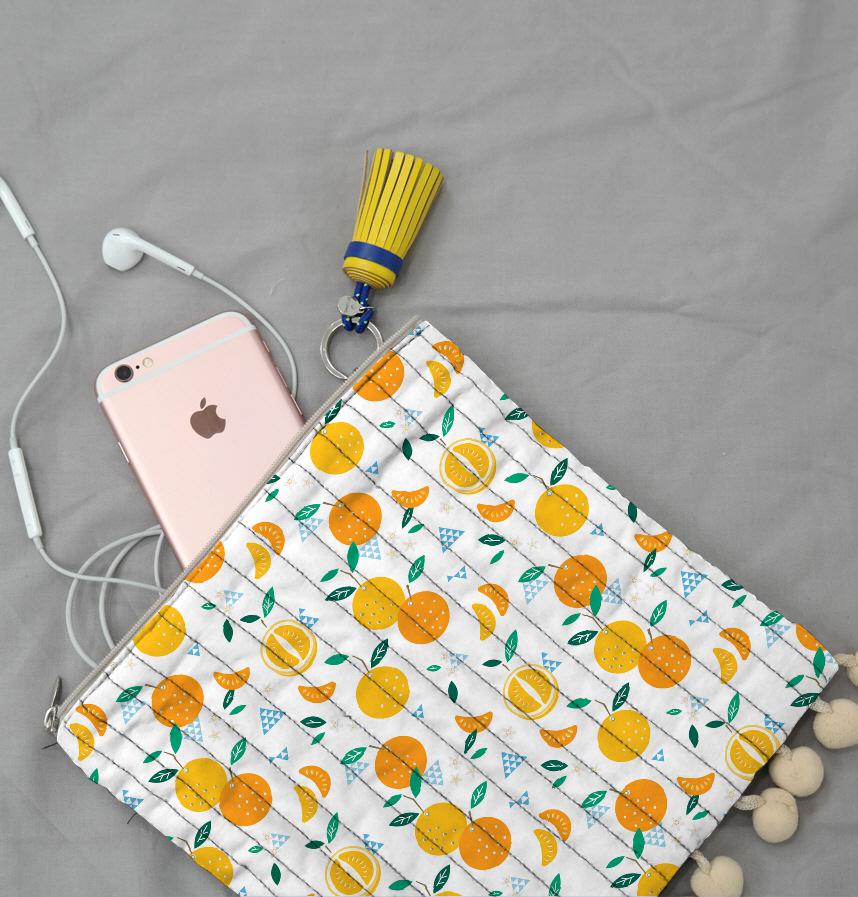 パターン説明 フレッシュ&ポップなみかんの総柄。