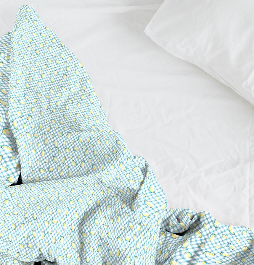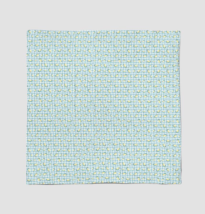 柄の大きさも小さいものと中くらいのものと二種類をランダムにデザインし、生地を裁断したときも他の布とも合わせやすく、使いやすいようにと考えました。