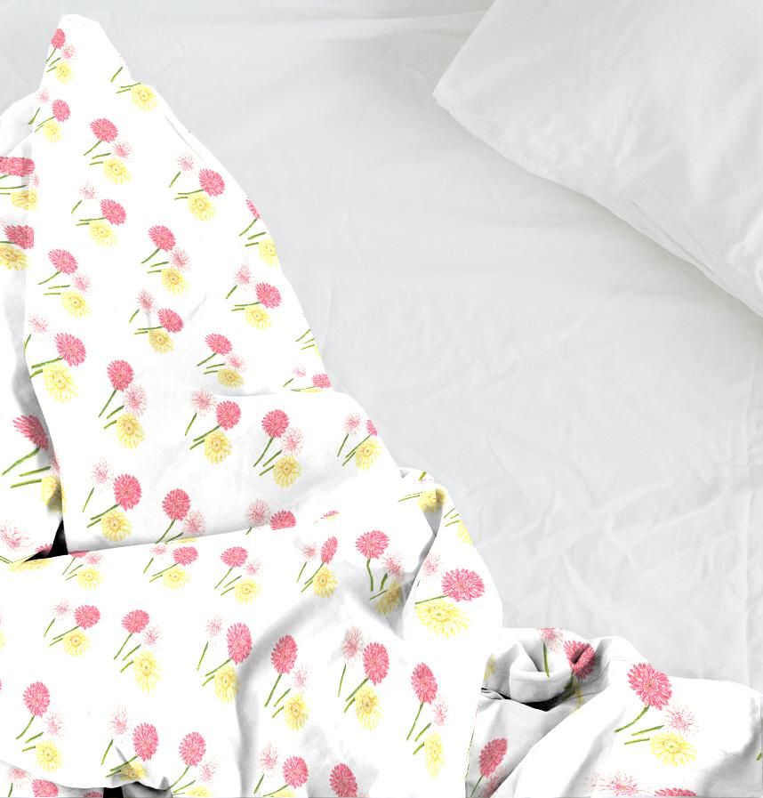 水彩風のガーベラ柄です。地の色はホワイトの他に、クリーム色をご用意しております。