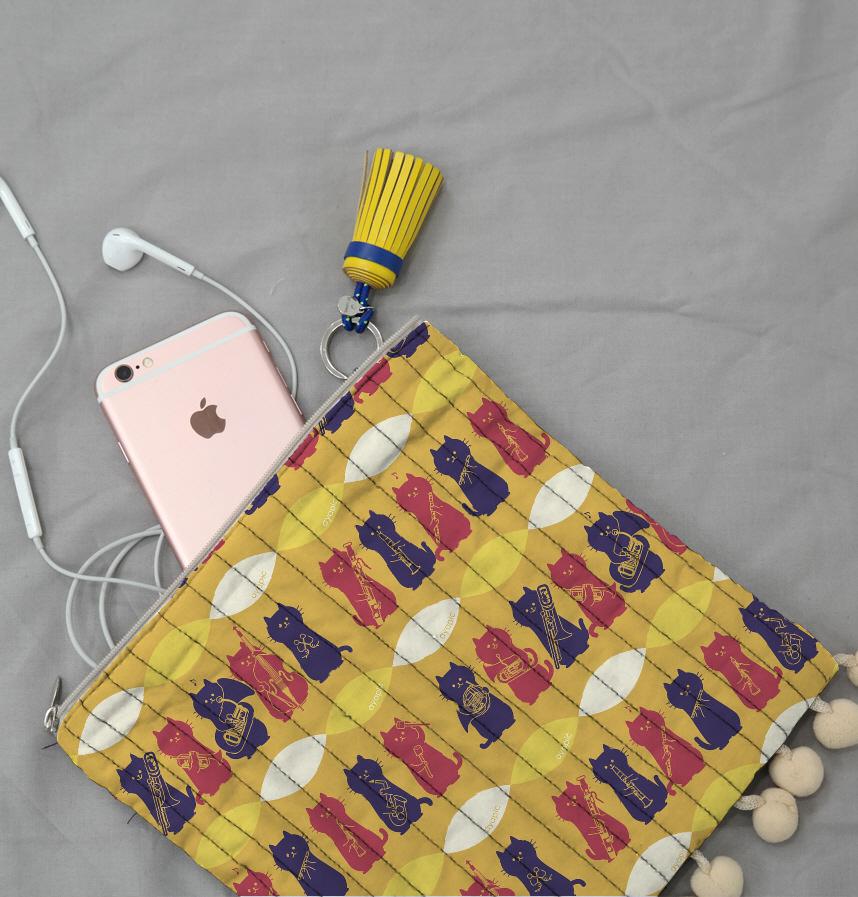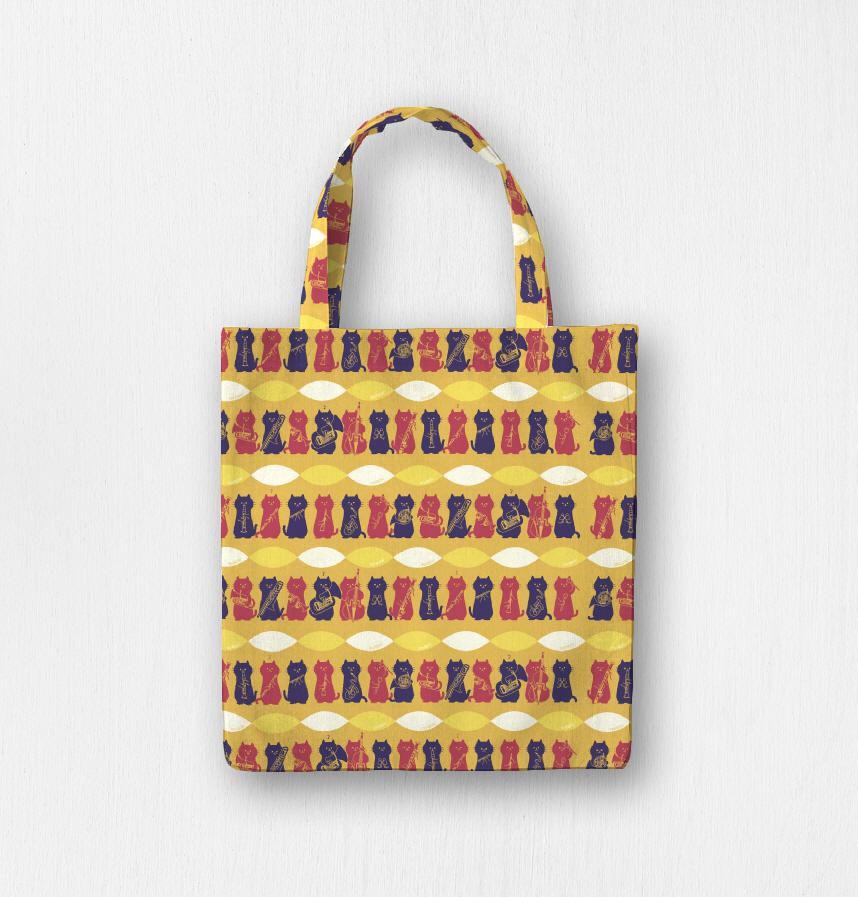 パターン名 猫の楽器隊(ほんわかイエロー)