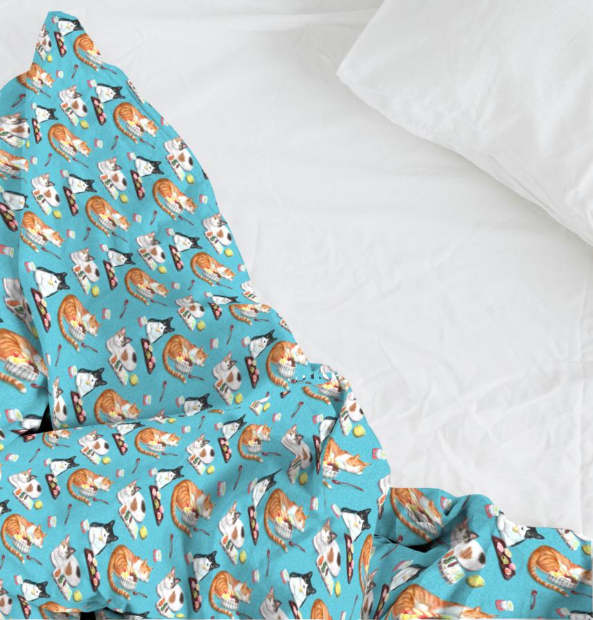 パターン名 茶屋猫~和菓子スイーツと猫~(ブルー)