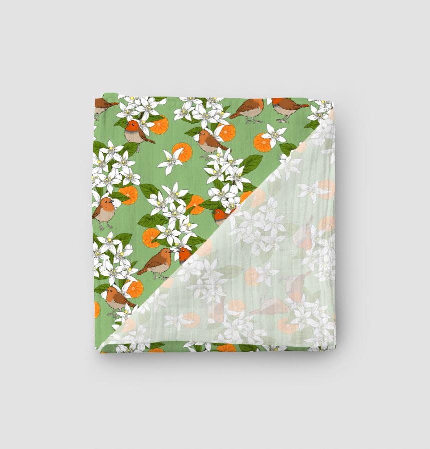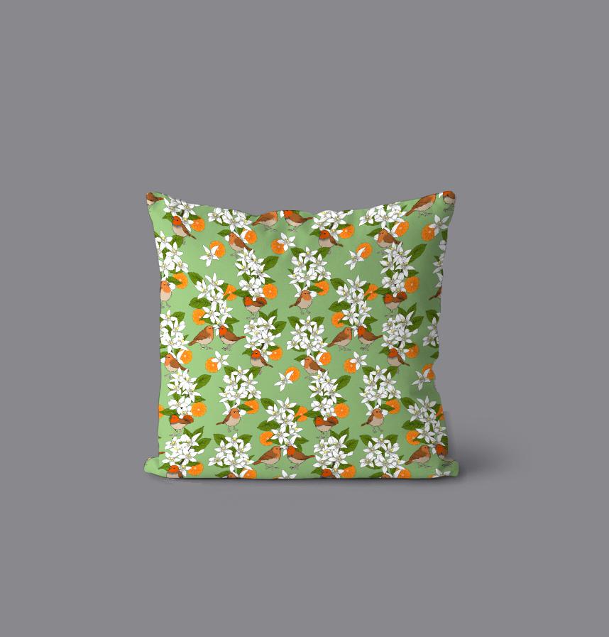 パターン説明 愛媛県の県鳥コマドリと、県花みかんの花のパターンです。