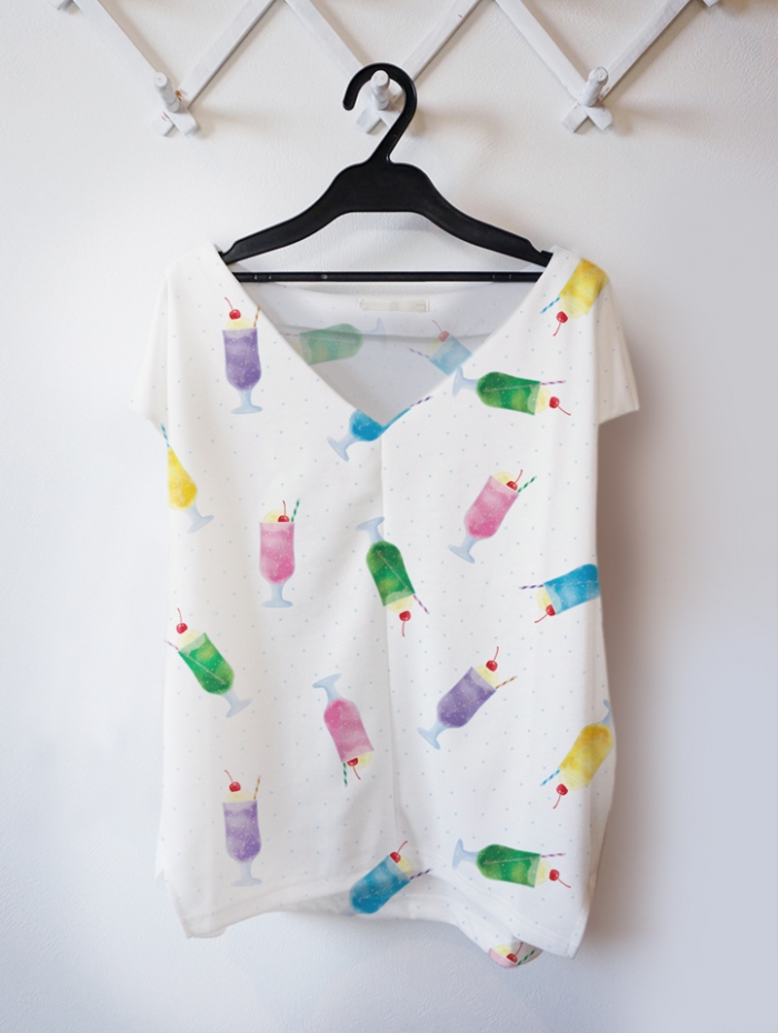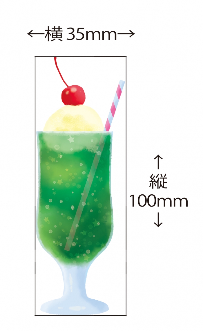 パターン説明 カラフルな水彩タッチのクリームソーダ柄です。
