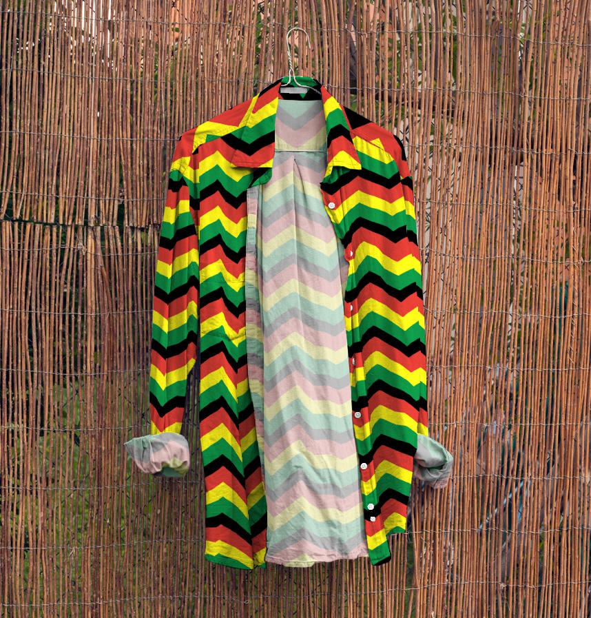 シェブロン柄とラスタカラーを組み合わせたパターンです。