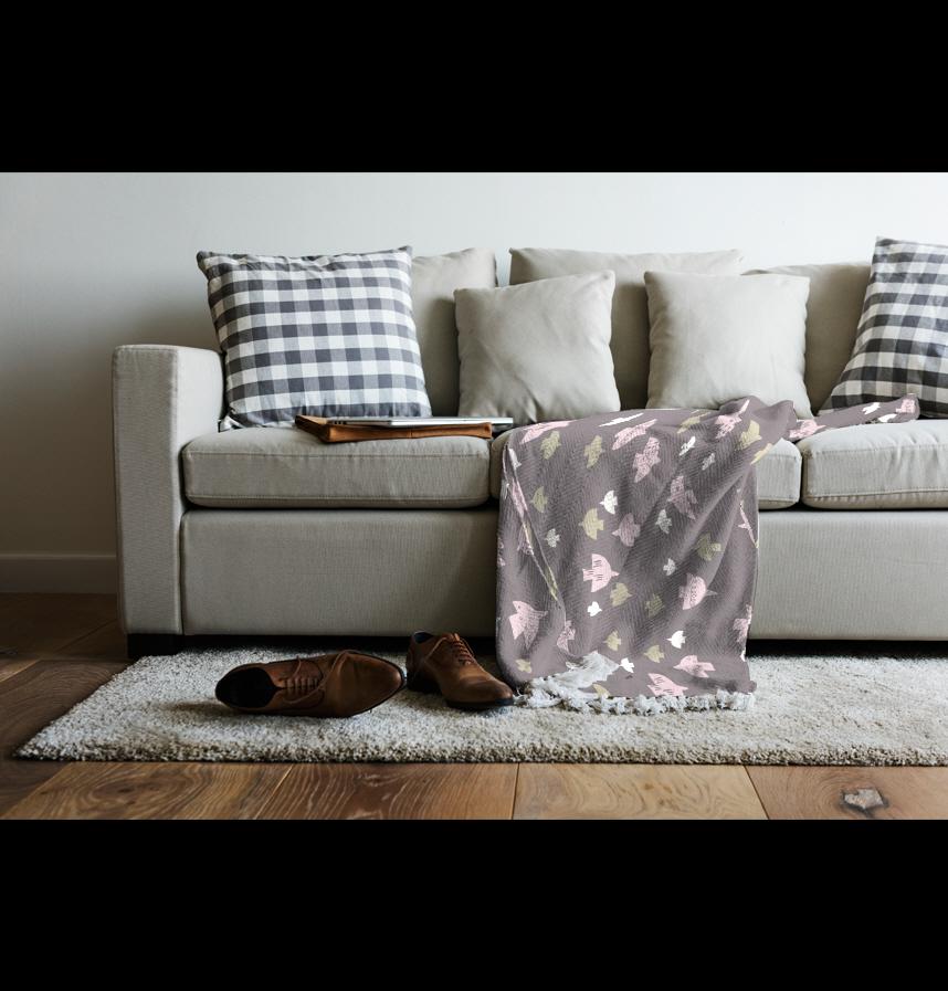 パターン説明 赤味のグレー地にピンク、黄味のグレー、白の模様です。72cm×72cmのリピート柄です。
