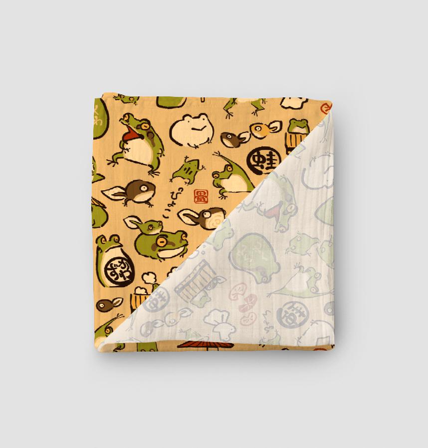 カエルやおたまじゃくしが集まって、やんやか楽しそうにしている絵です。