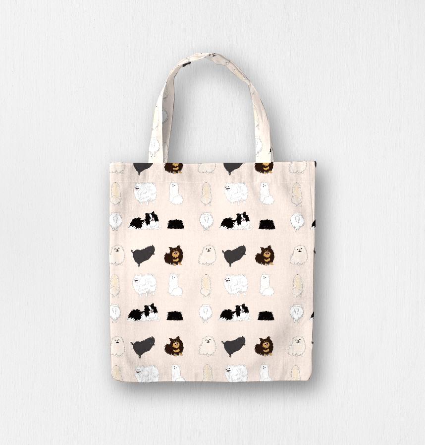 いろんなカラーのポメラニアンを、パラダイスのようなイメージで、