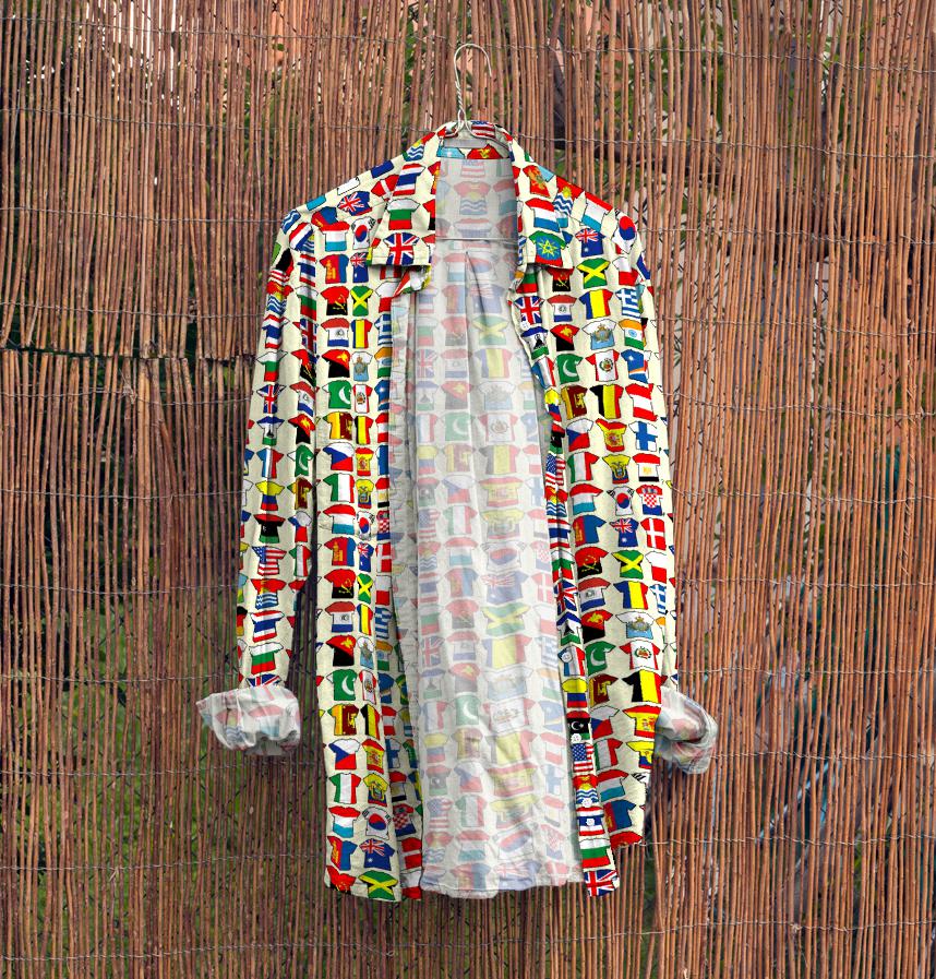 パターン説明 いろいろな国の国旗をTシャツで型取りました。