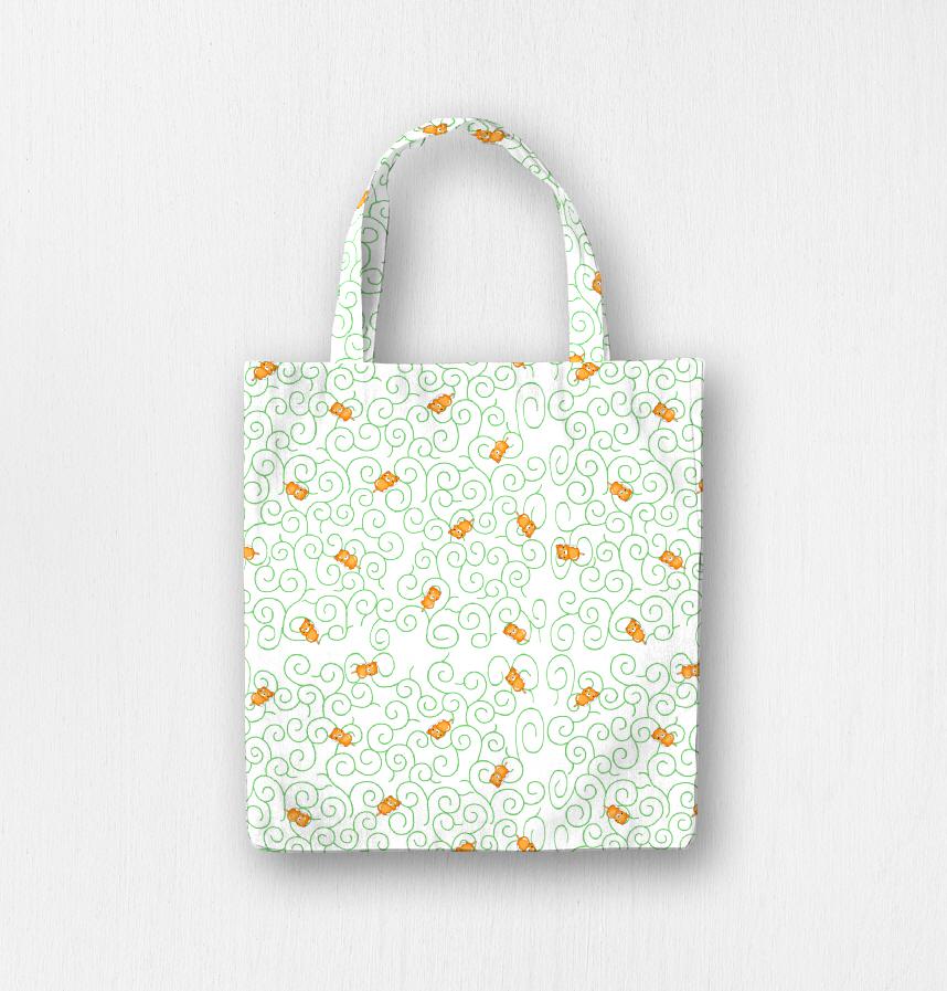 唐草模様の中にみたらし団子型の柴犬を散りばめました