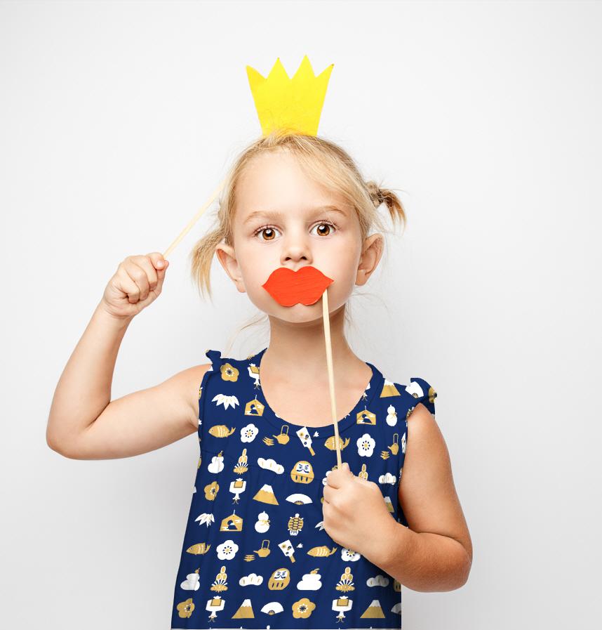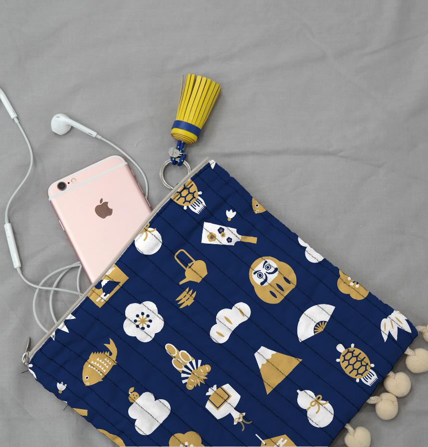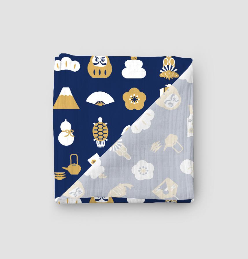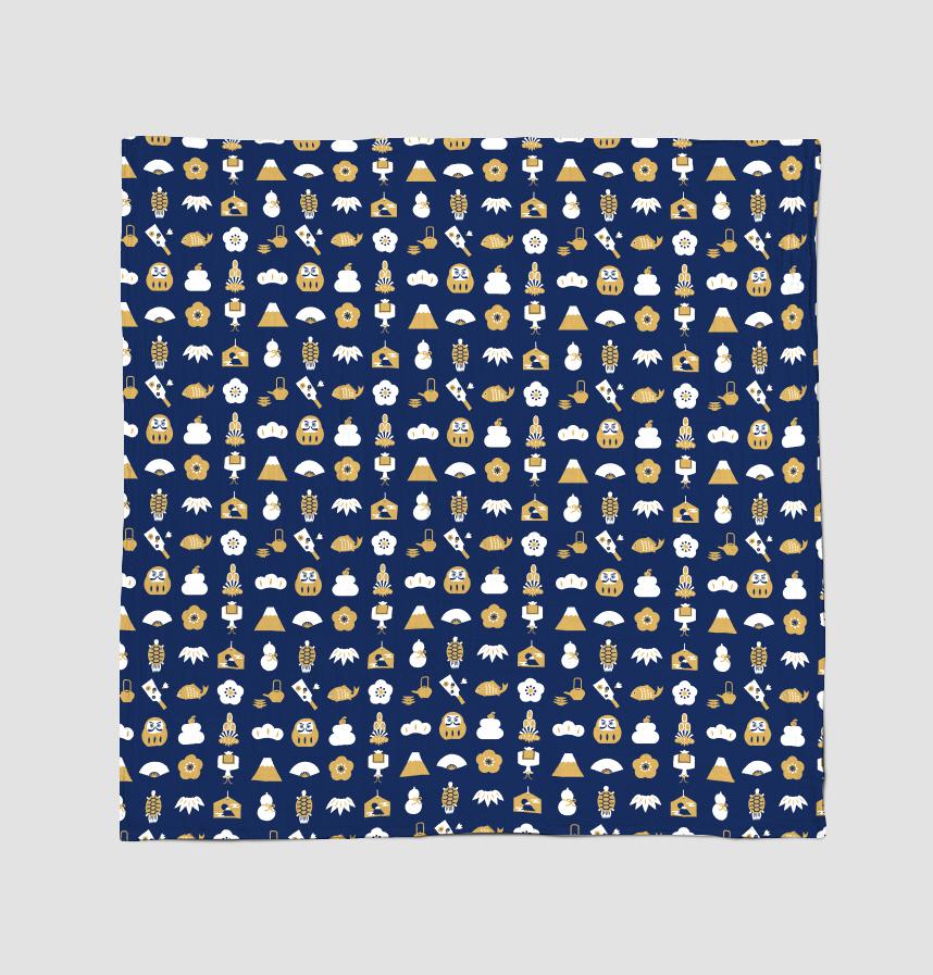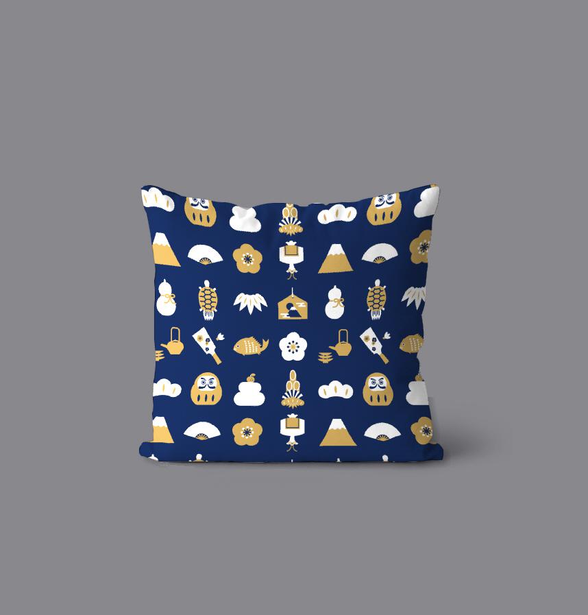 パターン説明 お正月の縁起物を色々散らしたかわいいパターン。