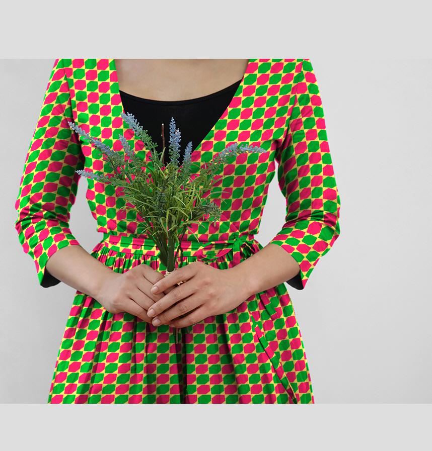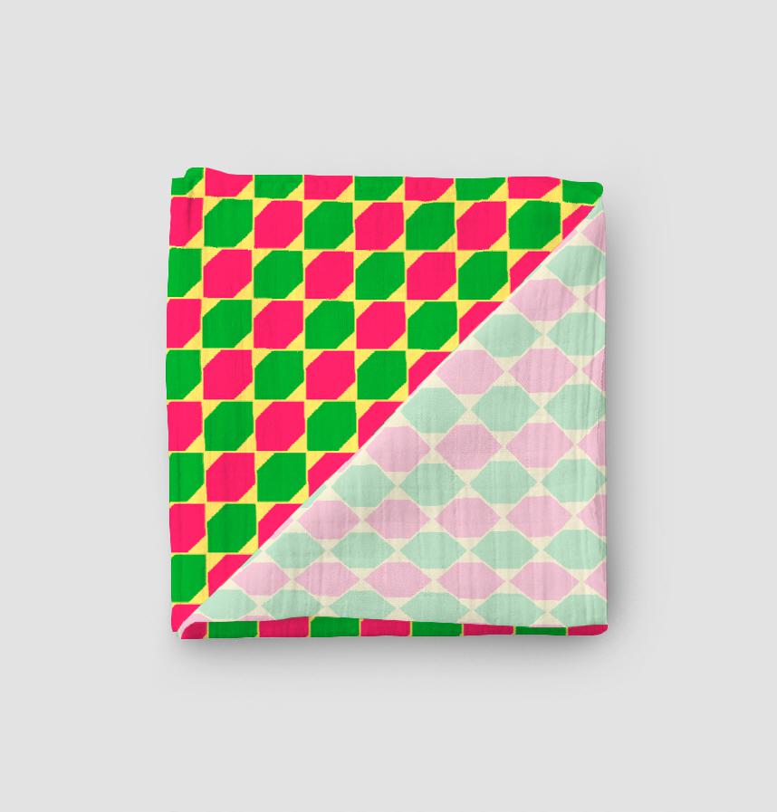 黄色とピンクと黄緑のカラーにそろばんの形の配置を組み合わせました♬