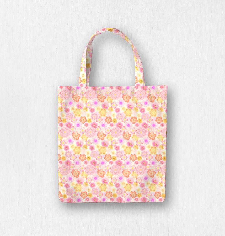 パターン説明 生成りの下地が可愛い花々を更に優しい雰囲気に。