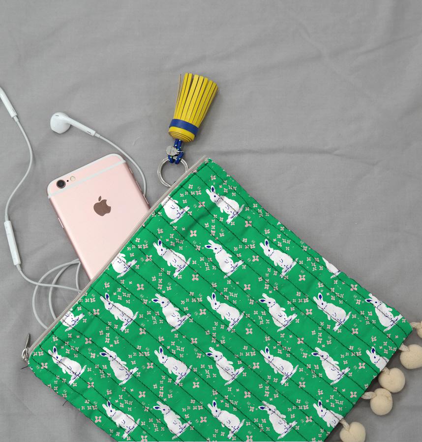 ヨーロッパの古い絵本の挿絵のようなうさぎさんのイラストを模様にしました。色違いもあります。