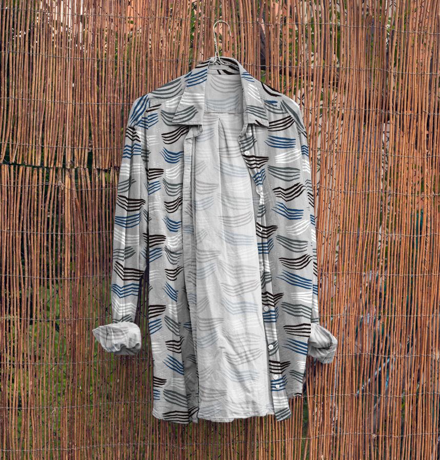 ヒゲクジラが滑らかに遊泳する様子をデフォルメした柄です。