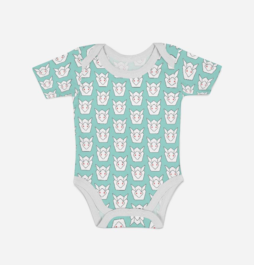 昔、魔よけ・お守りとして子供の着物の背中に刺繍した背守り。そのなかのうさぎの図案をアレンジし生地のパターンにしました。