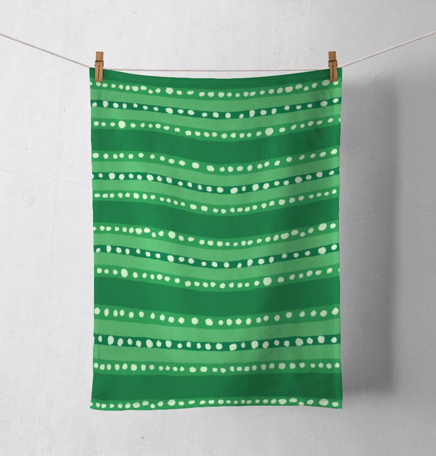 パターン名 手描き 鮮やかなストライプ×ドット/緑