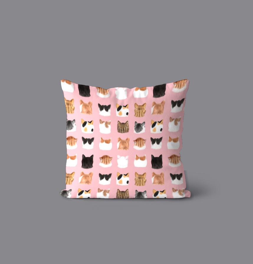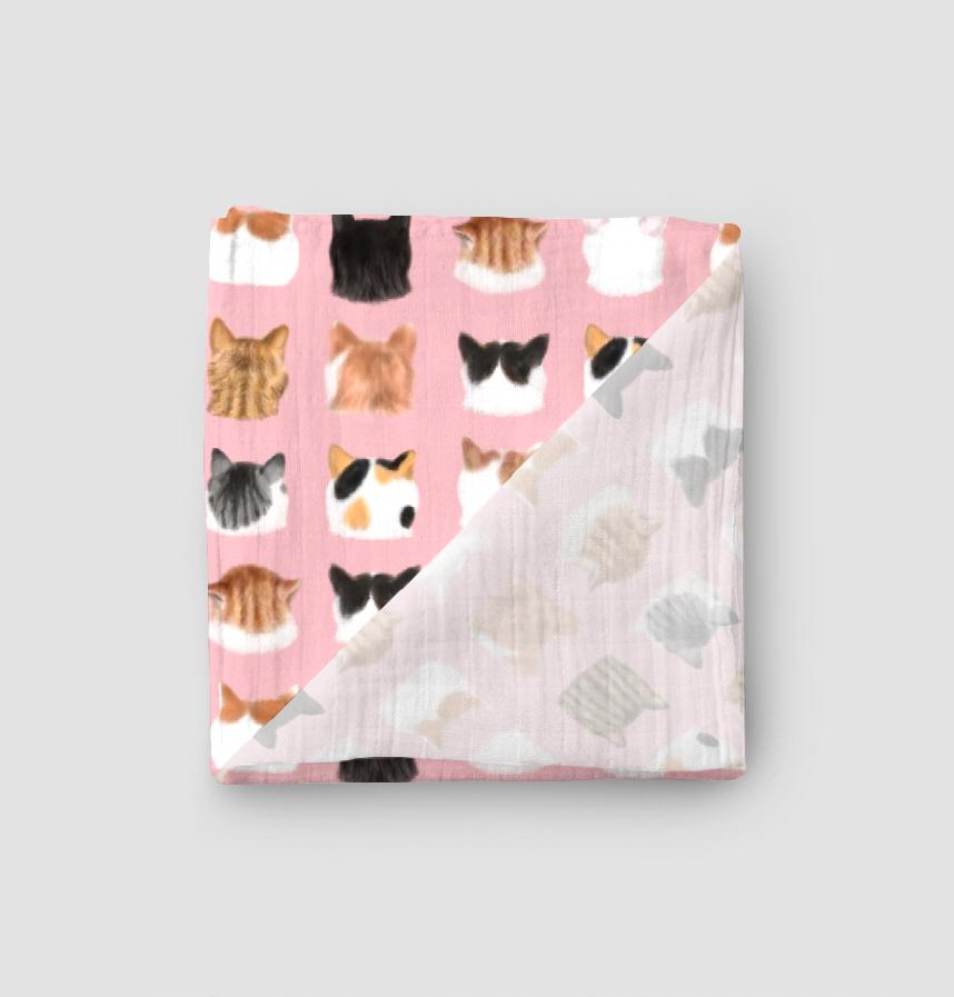 そんな後頭部好きの方々のために黒猫ちゃん、白猫ちゃん、キジトラちゃん、茶トラちゃんなどなど色々な猫ちゃんの後ろ向きのふんわりした頭をたくさん並べた生地を作りました。
