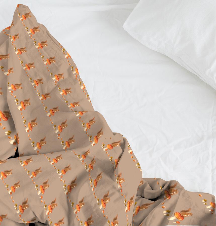 キノコの上に乗ったリスやどんぐりを並べてボーダー状になったデザインです。