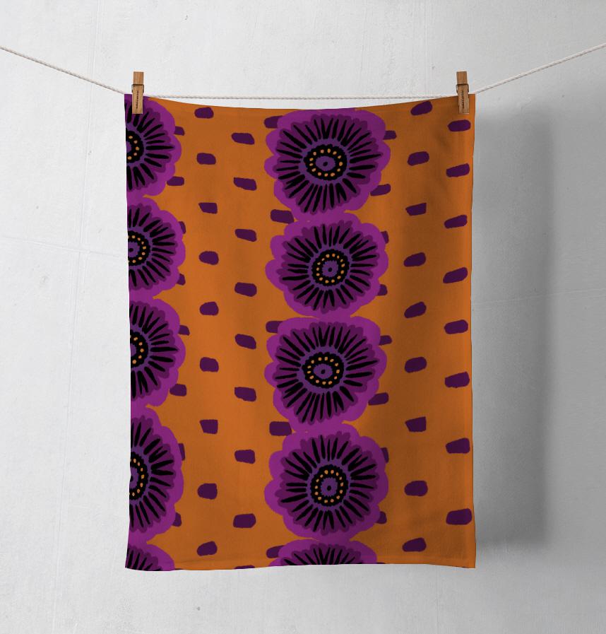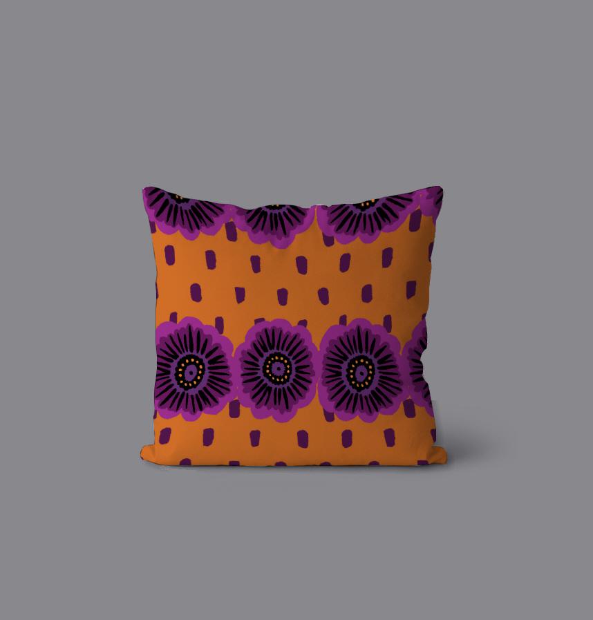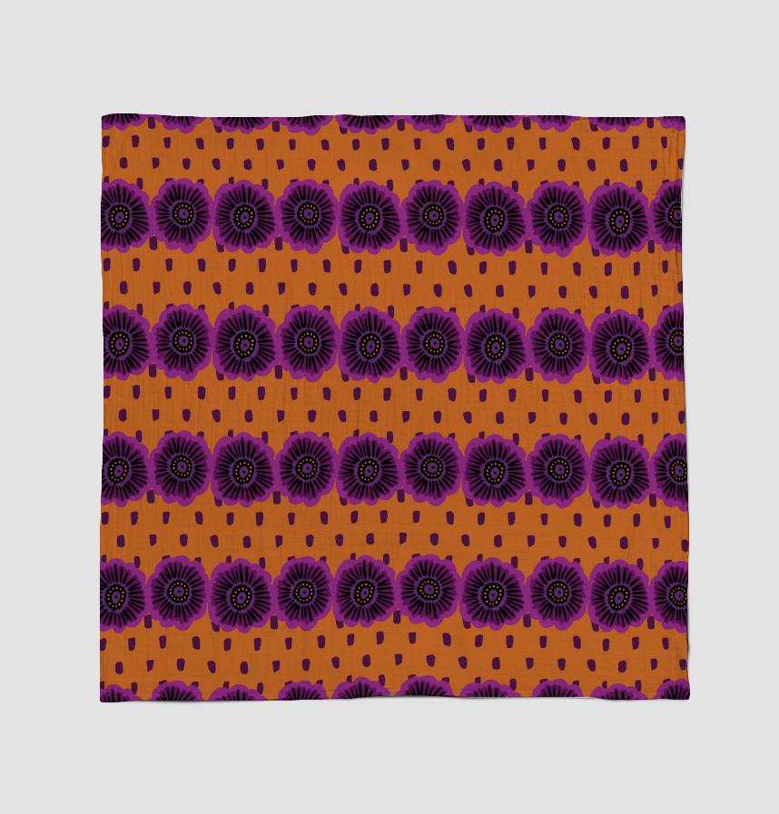 パターン説明 レトロな色合いの手描きの花×ドット模様。