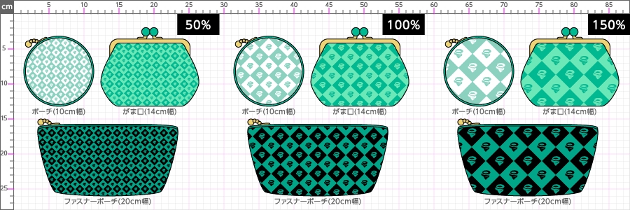 • デジタルプリントの特性上、同じデザインや生地であっても、作業時ごとに色の違いが生じることがあります。
