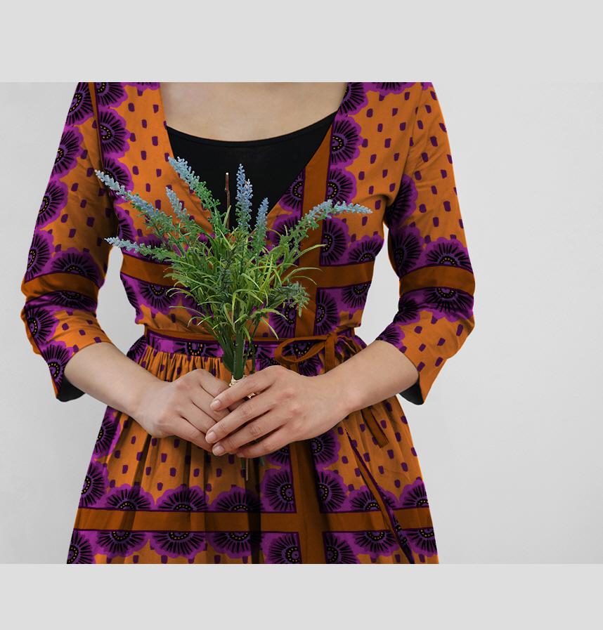 パターン名 レトロな花×ドット パネル柄/紫