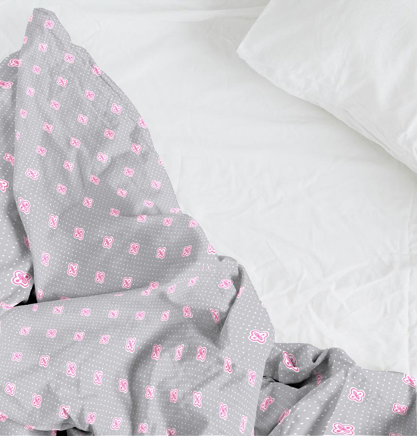 ガーリーなグレー×ピンクの配色です。